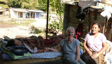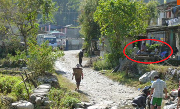 After the 13 Indigenous Grandmothers Ceremony (2013) I decided to backpack around Nepal using local bus and to head towards Pokhara. Having hiked for half a day, I rested intending to return the same way. As I rested a little girl came and said that her father invited me to lunch with them (image-red circle). I was so pleased that I had not refused as the meal was delicious. I was curious and so enquired about the old lady that lay on the truckle bed out front and was told that she had been knocked over by a motor cycle but that her broken lower leg was refusing to mend sufficient for her to stand. I offered a Reiki healing in exchange for my delicious meal.